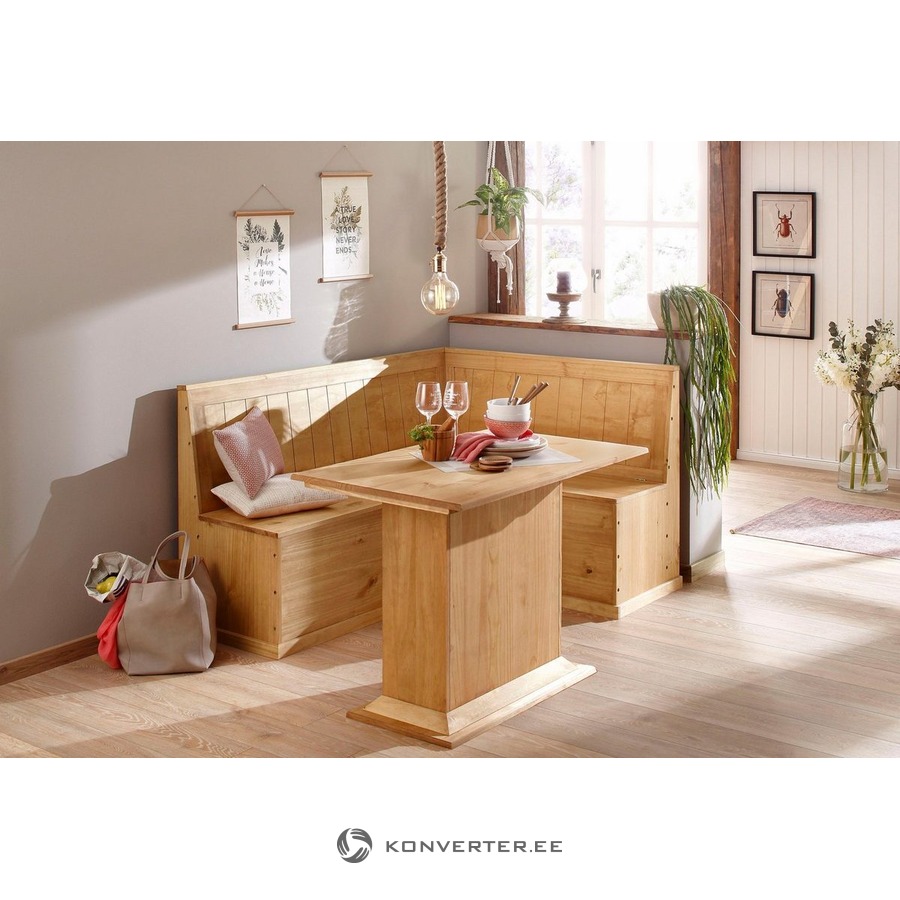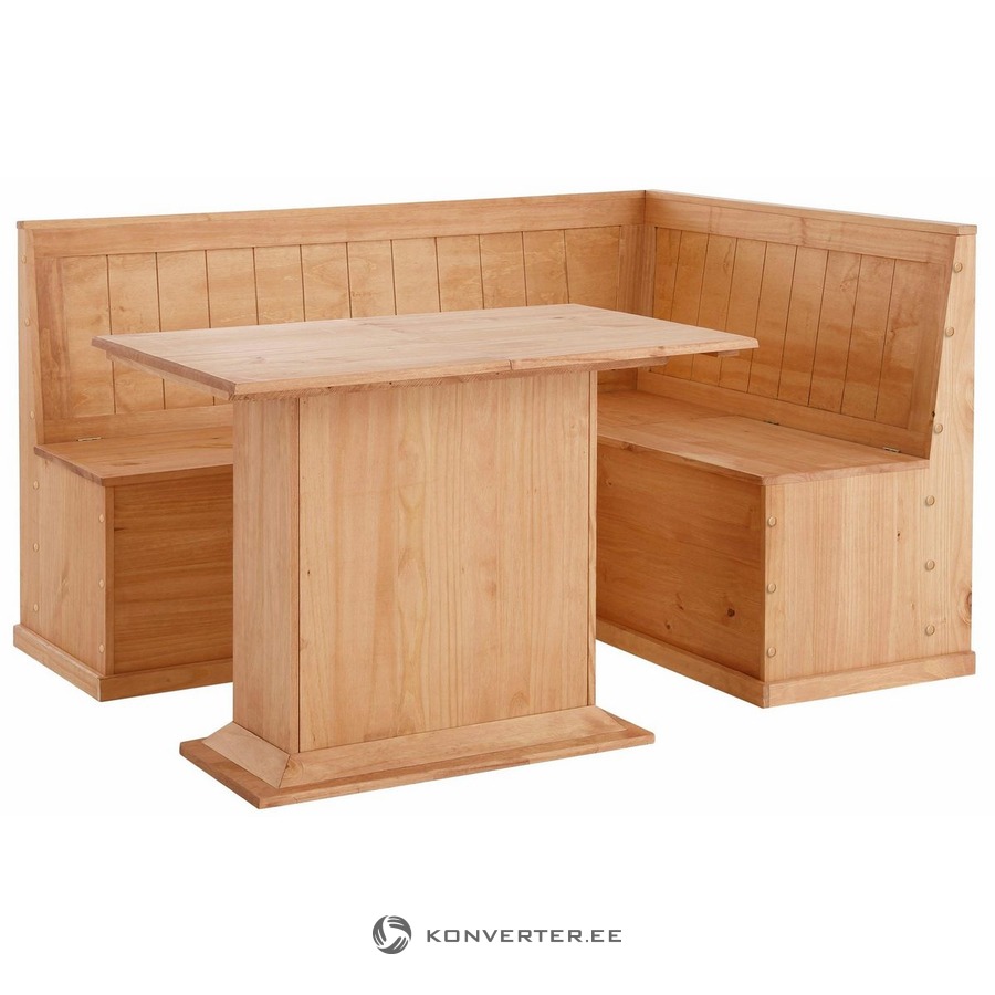 Set of solid wood corner bench with storage + solid wood dining table (sara)